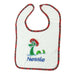 Babies Bib with a Swimming Nessie embroidery and tartan edging. Velcro fastening at the back.